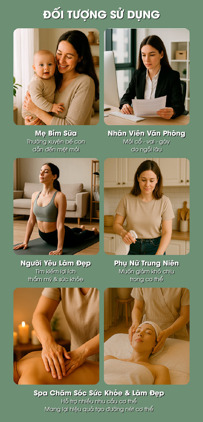 + Giảm căng cứng, giảm mỏi cơ hiệu quả.