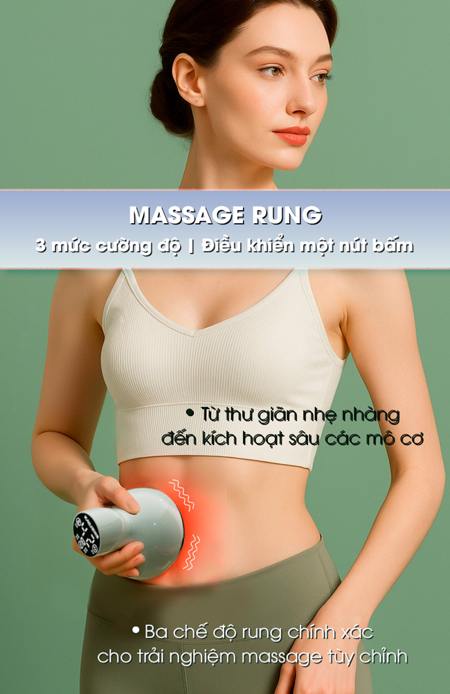 - Công nghệ rung đa tầng 3 cấp độ: giúp làm mềm cơ, Giải phóng căng cơ từ nhẹ nhàng đến chuyên sâu và thúc đẩy lưu thông máu: