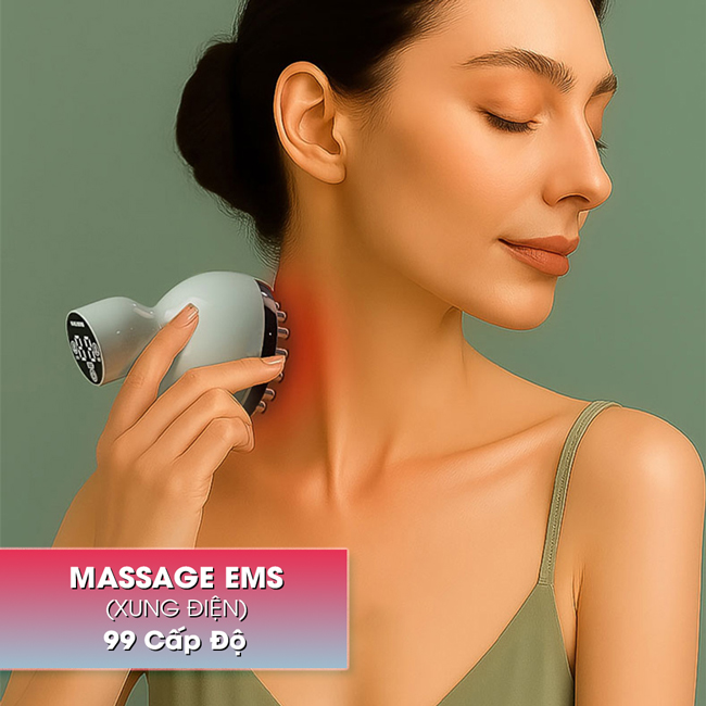 - Massage EMS 99 mức độ - Mô phỏng thao tác massage chuyên nghiệp: Công nghệ này tạo ra các xung điện sinh học an toàn với 99 mức độ, kích thích trực tiếp vào sợi cơ: