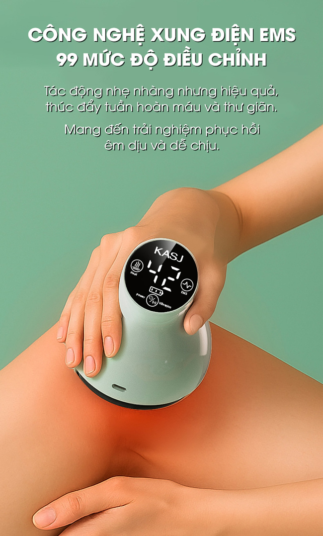 Máy massage cạo gió KASJ L6 là thiết bị chăm sóc sức khỏe thế hệ mới, được thiết kế dành riêng cho những ai muốn thư giãn, giảm đau nhức và phục hồi cơ thể ngay tại nhà nhưng vẫn đạt hiệu quả tương đương với liệu trình chuyên nghiệp. Sản phẩm là sự kết hợp tối ưu giữa công nghệ rung tiên tiến - xung điện EMS - nhiệt trị liệu và ánh sáng đỏ, tạo nên một phương pháp thư giãn toàn diện, hỗ trợ cải thiện tuần hoàn máu, giảm căng cơ và giúp cơ thể phục hồi nhanh hơn.