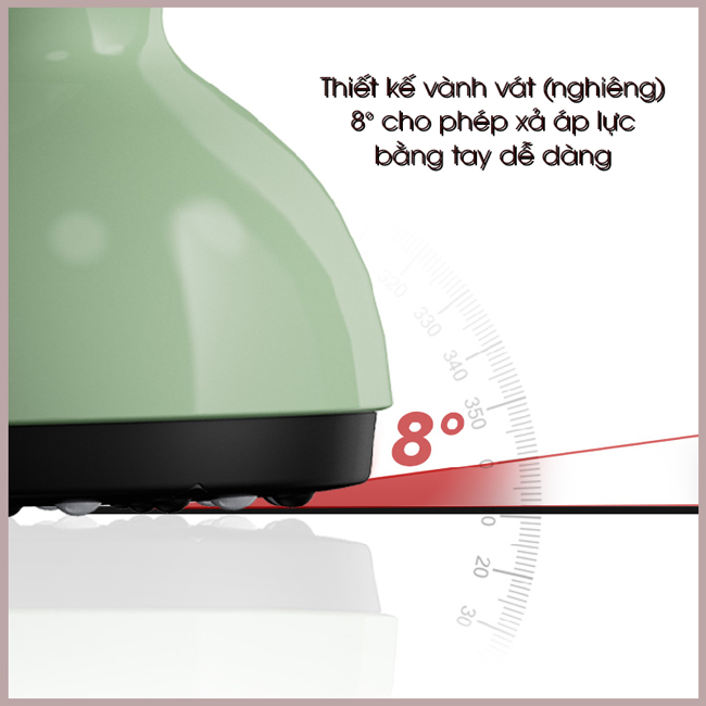 - Thiết kế mép vát 8° thông minh: Giúp dễ dàng xả áp bằng tay, đảm bảo an toàn và mang lại cảm giác thoải mái khi kết thúc liệu trình.