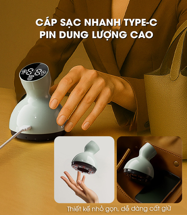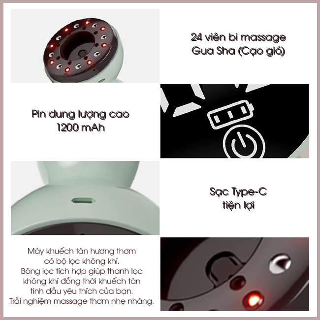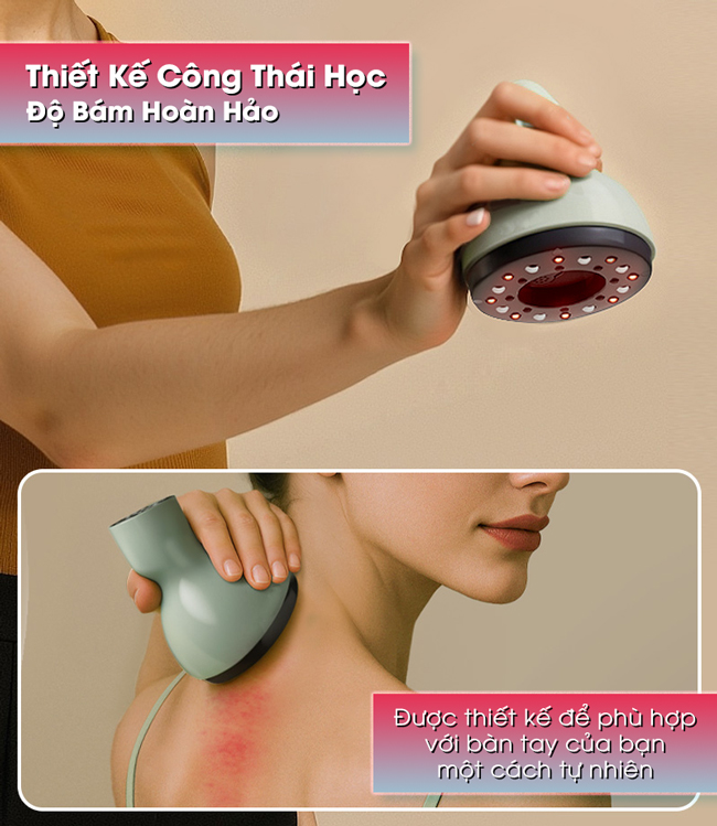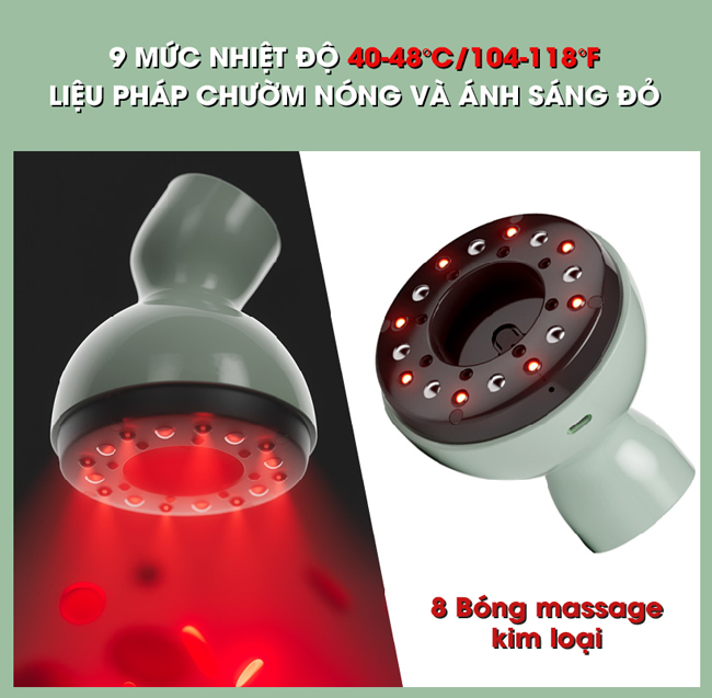 - Hệ thống massage chuyên nghiệp: Tích hợp 8 bi lăn từ tính xoay 360 độ, thư giãn cơ bắp, tăng hiệu quả cạo gió.