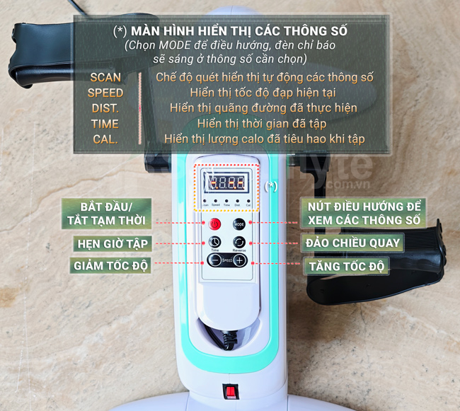 - Sử dụng nút (5) Đảo ngược nó có thể thay đổi hướng quay của bàn đạp.