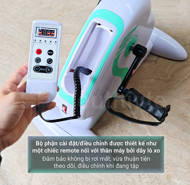 - Điều khiển tháo rời tiện lợi: Hỗ trợ thay đổi tốc độ và chế độ tập mà không cần cúi người, đặc biệt hữu ích cho người cao tuổi hoặc người hạn chế vận động.