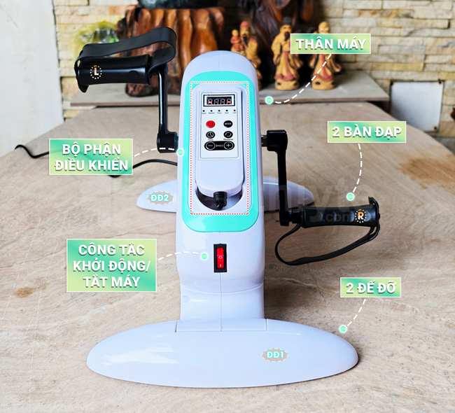 - Hoạt động bằng động cơ điện: Máy vận hành hoàn toàn bằng motor điện, giúp tay và chân chuyển động đều đặn mà không cần dùng sức, đặc biệt phù hợp với người yếu cơ, người đang phục hồi.