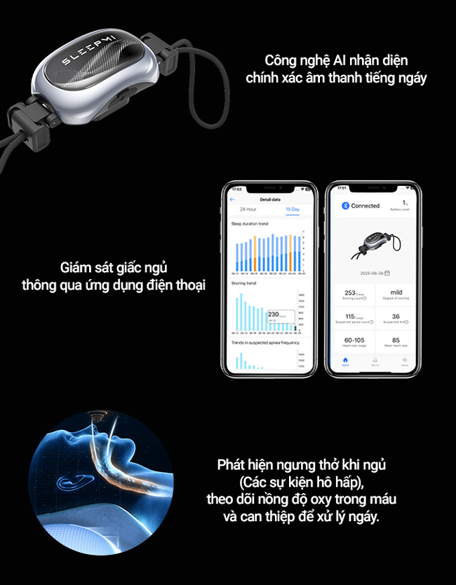 - Thiết bị phát hiện tiếng ngáy hoặc nhịp thở bất thường.