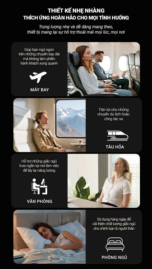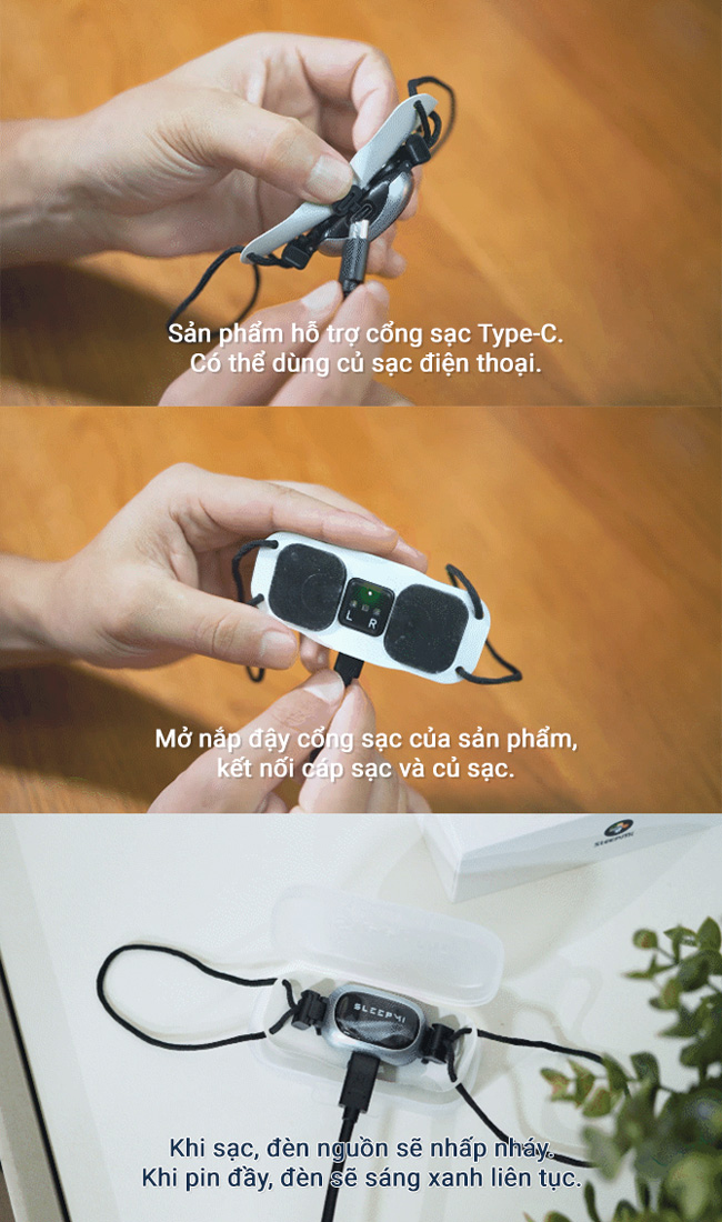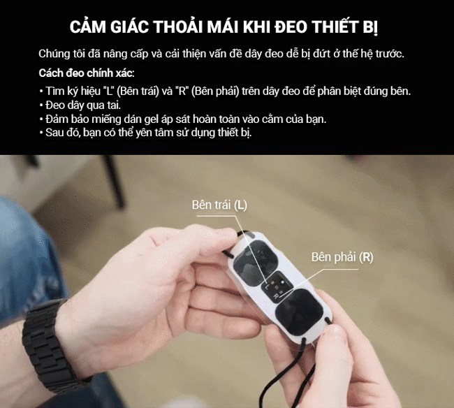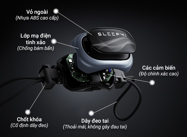 Thiết kế này giúp thiết bị vẫn cố định khi người dùng ngủ nghiêng, nằm ngửa hoặc di chuyển trong khi ngủ.