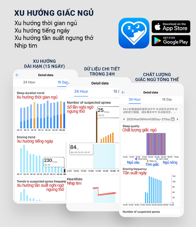 Nhờ các chỉ số này, máy có thể xác định thời điểm xuất hiện ngáy hoặc rối loạn hô hấp khi ngủ, từ đó kích hoạt cơ chế hỗ trợ phù hợp.