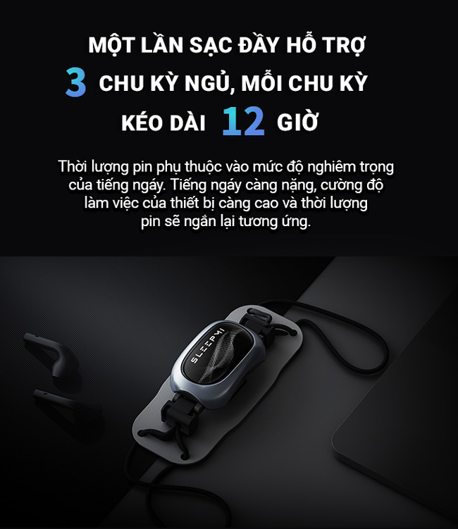 Thiết bị có thể hoạt động liên tục trong khoảng 3 chu kỳ ngủ (mỗi chu kỳ khoảng 12 giờ) sau mỗi lần sạc. Điều này giúp người dùng không cần sạc hàng ngày.