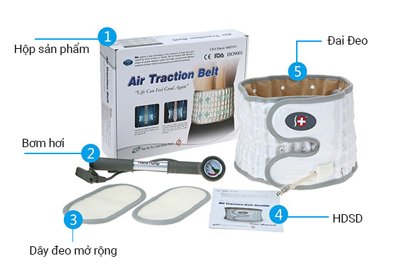 Lưu ý: Không đeo đai kéo không khí trong khi ăn hoặc trong 1 giờ sau bữa ăn. Chọn kích cỡ phù hợp.