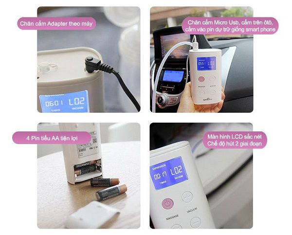 - Tích hợp tính năng hút sữa điện đôi và có thể sạc điện bằng pin AA vô cùng tiện lợi.